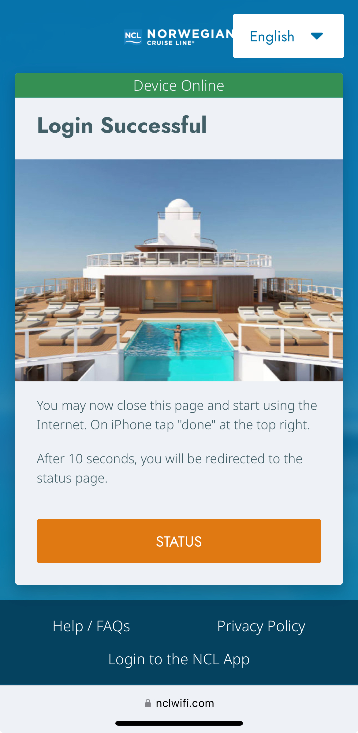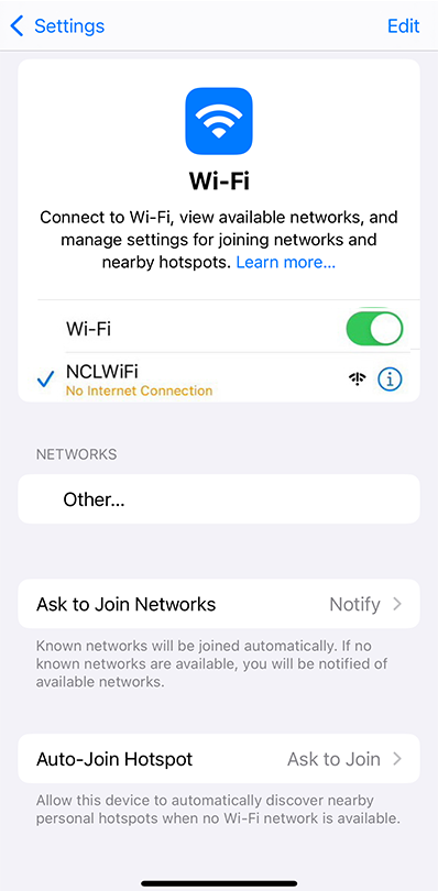 Step 2: Connect to the ship's free Wi-Fi (NCLWiFi)