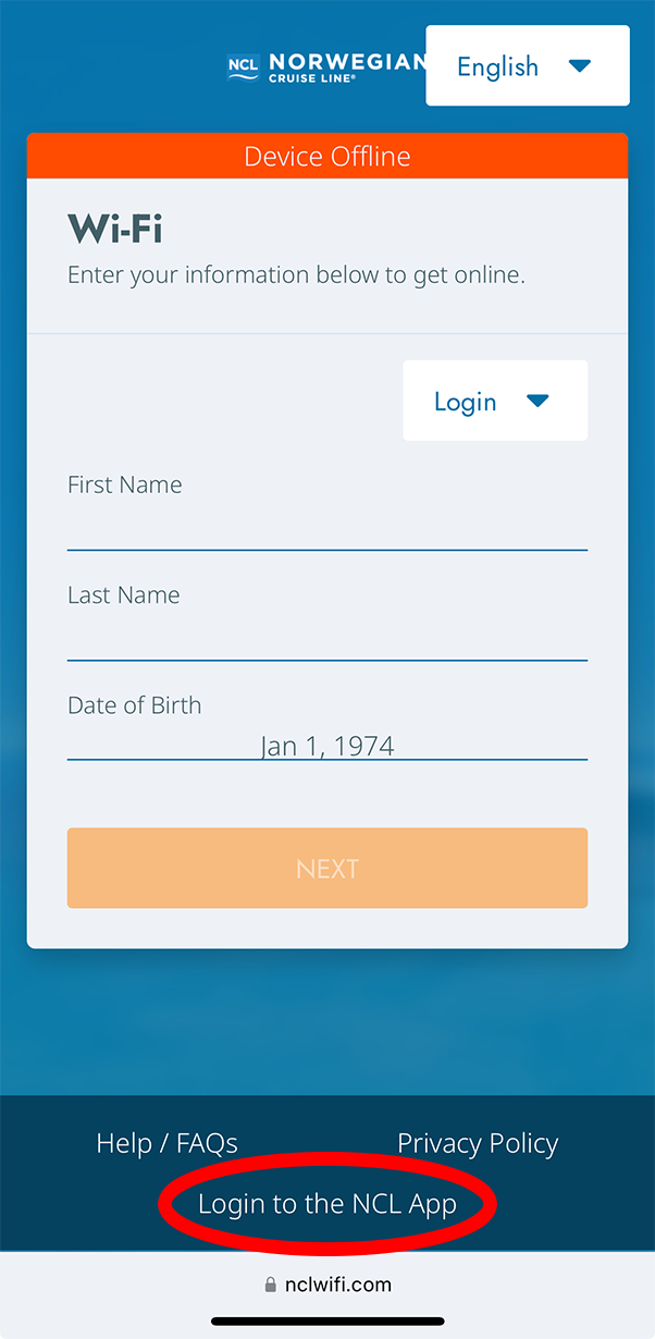 Step 3: Click "Login to the NCL App" at the VERY bottom of the screen. This will prompt a green "Device Online" at the top.